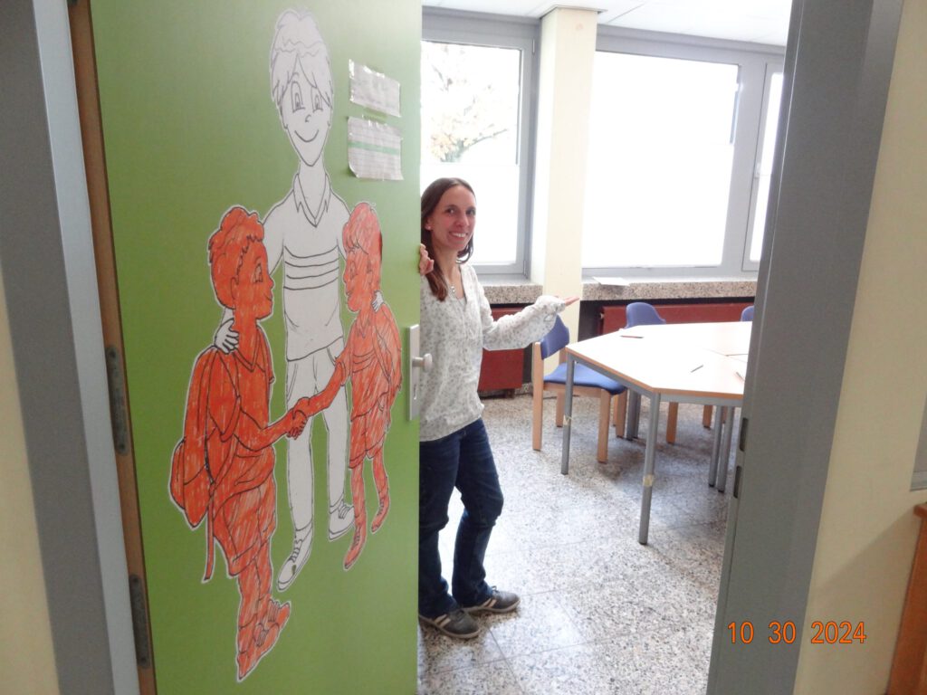 Die Tür zum FAIR­mitt­ler­raum am SGS ist offen für alle Schüler*innen, die sich ein offe­nes Ohr von den FAIR­mitt­lern oder der Schul­so­zi­al­ar­bei­te­rin Frau Zar­rath-Knob­lich wünschen.