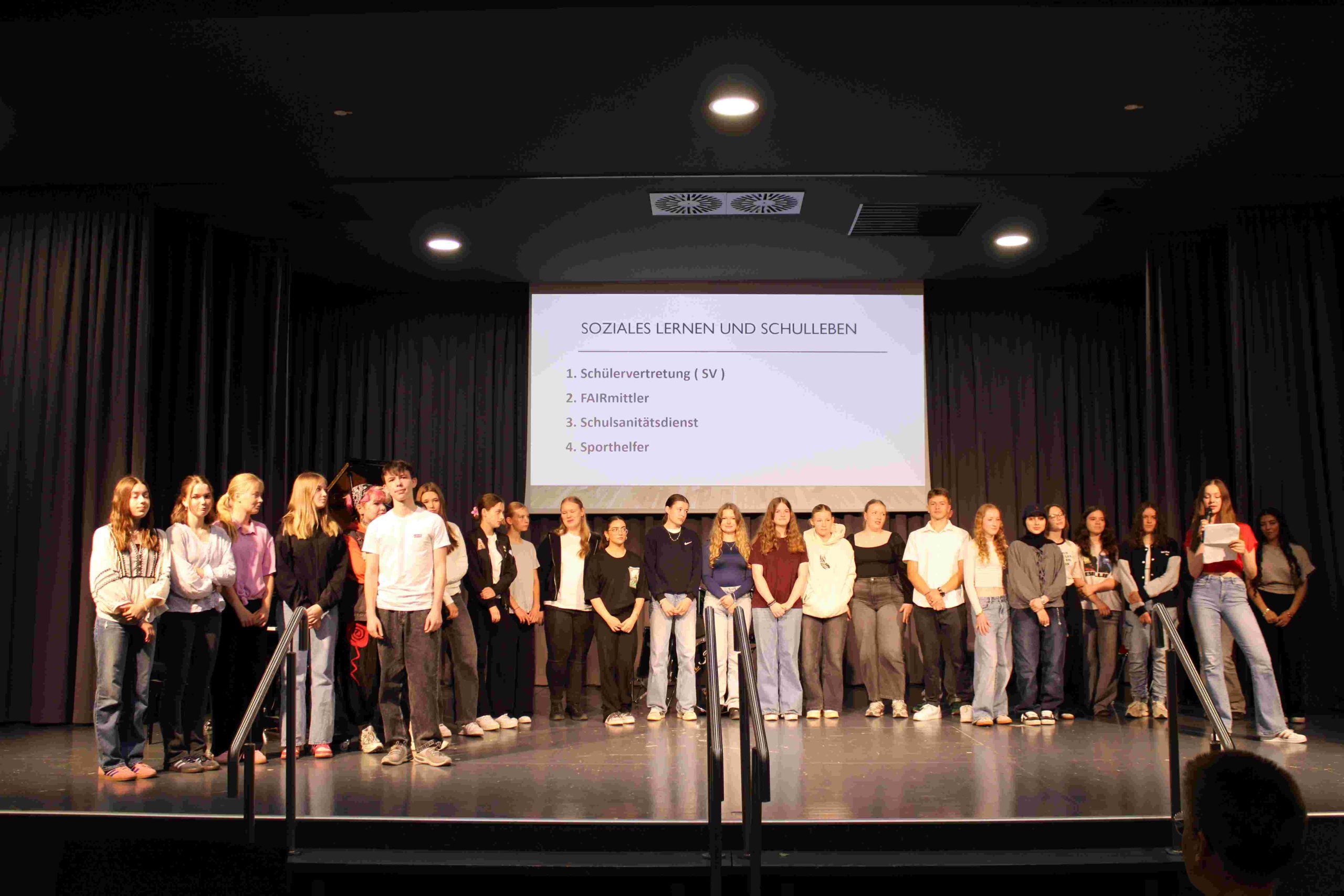 Zum Schuljahresende am 11. Juli 2025 fand am Städtischen Gymnasium Steinheim wieder die alljährliche Bestenehrung in der Aula des Schulzentrums statt, zu der sich die Schülerinnen und Schüler zusammen mit ihren Lehrerinnen und Lehrern versammelten. Hierbei wurden besonders herausragende Schülerleistungen des Schuljahres 2024/2025 in den Bereichen Sport, Kultur, Soziales, Sprachen und Naturwissenschaften gewürdigt.